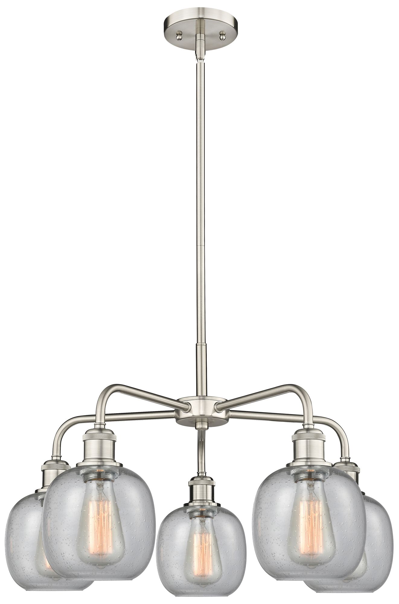 Belfast 24" Wide 5 Light Satin Nickel Stem Hung Chandelier With Seedy