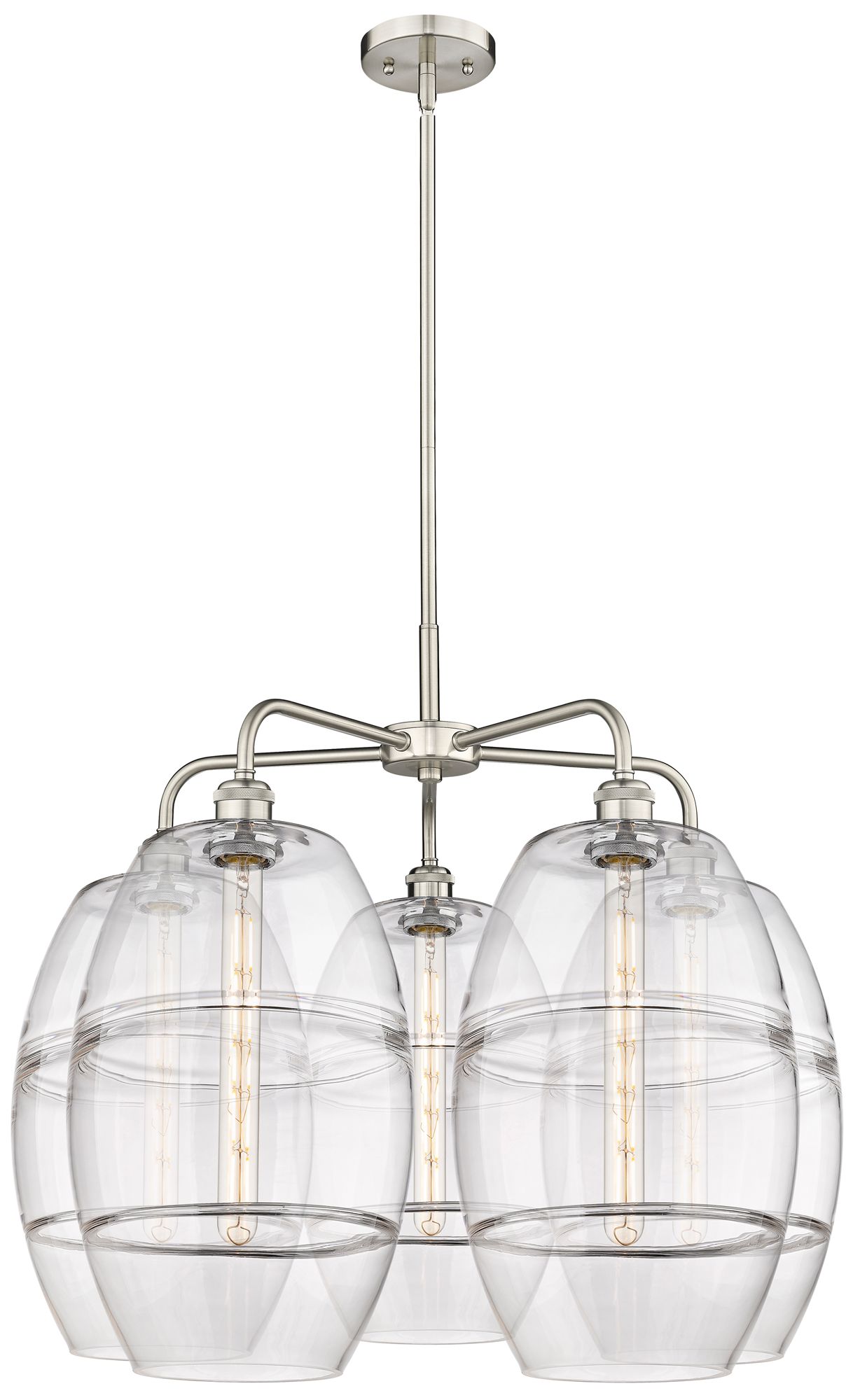 Ballston Vaz 28"W 5-Light Satin Nickel Stem Chandelier w/ Clear Shade
