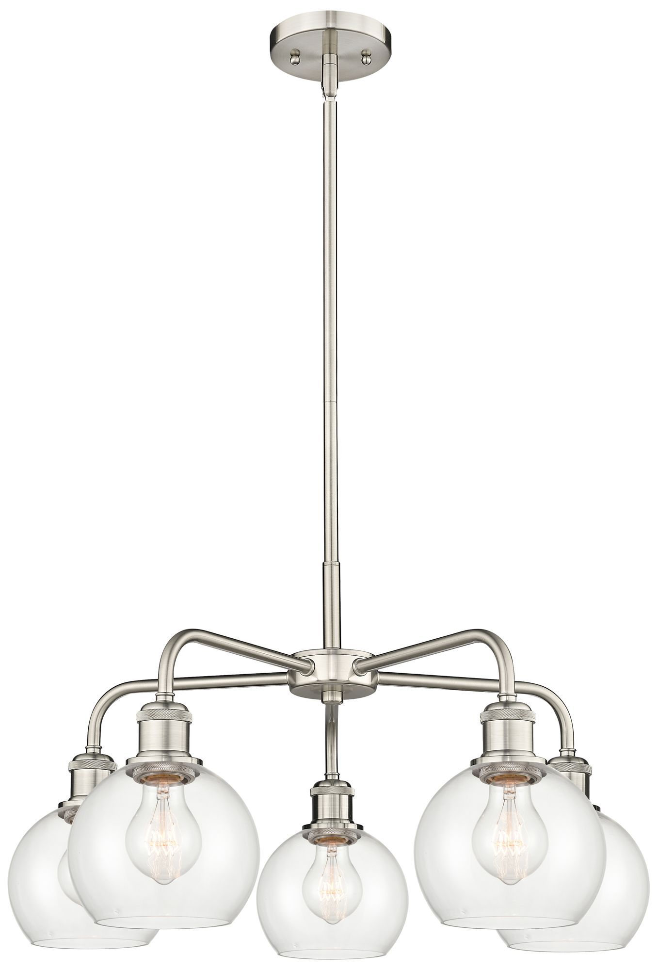 Athens 24" Wide 5 Light Satin Nickel Stem Hung Chandelier With Clear S