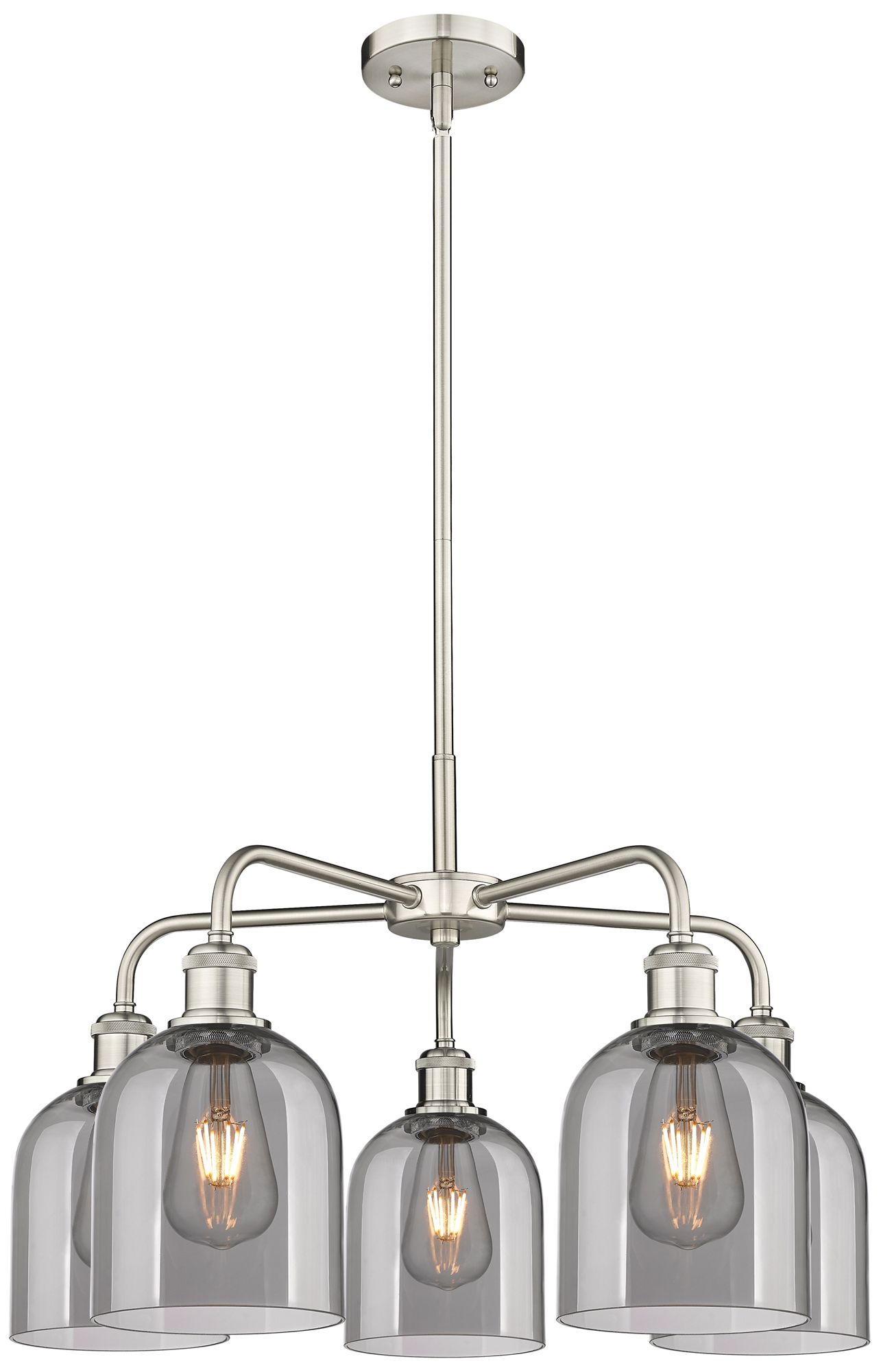 Ballston Bella 23.5"W 5-Light Satin Nickel Stem Chandelier w/ Smoke Sh