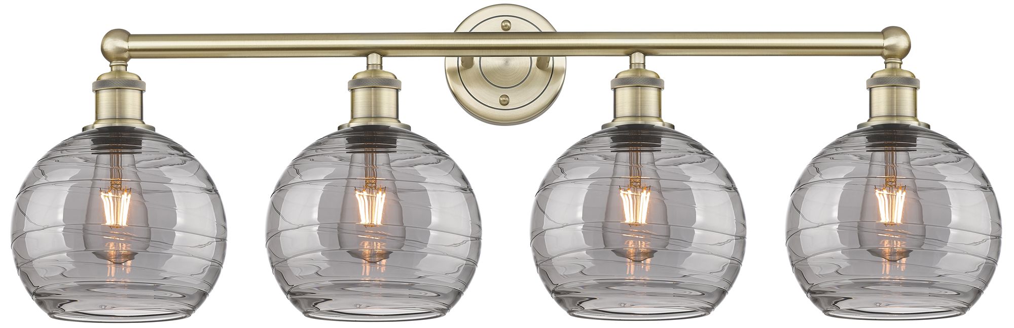 Edison Athens 35"W 4-Light Antique Brass Bath Light w/ Smoke Swirl Sha