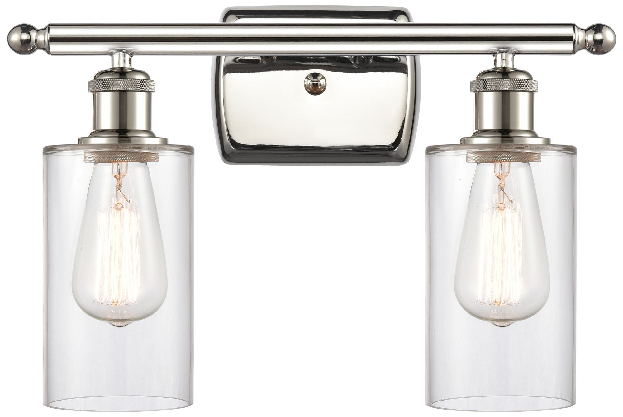 Clymer 16" 2-Light Polished Nickel Bath Light w/ Clear Shade