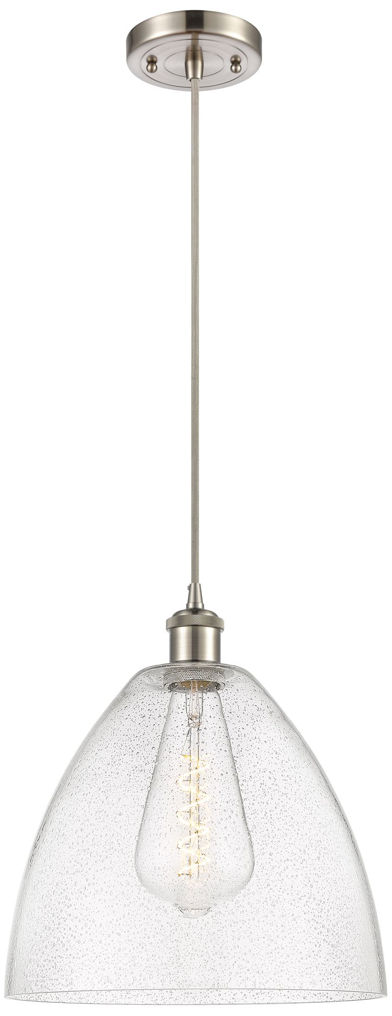 Ballston Bristol Glass 12" LED Mini Pendant - Brushed Satin Nickel - S