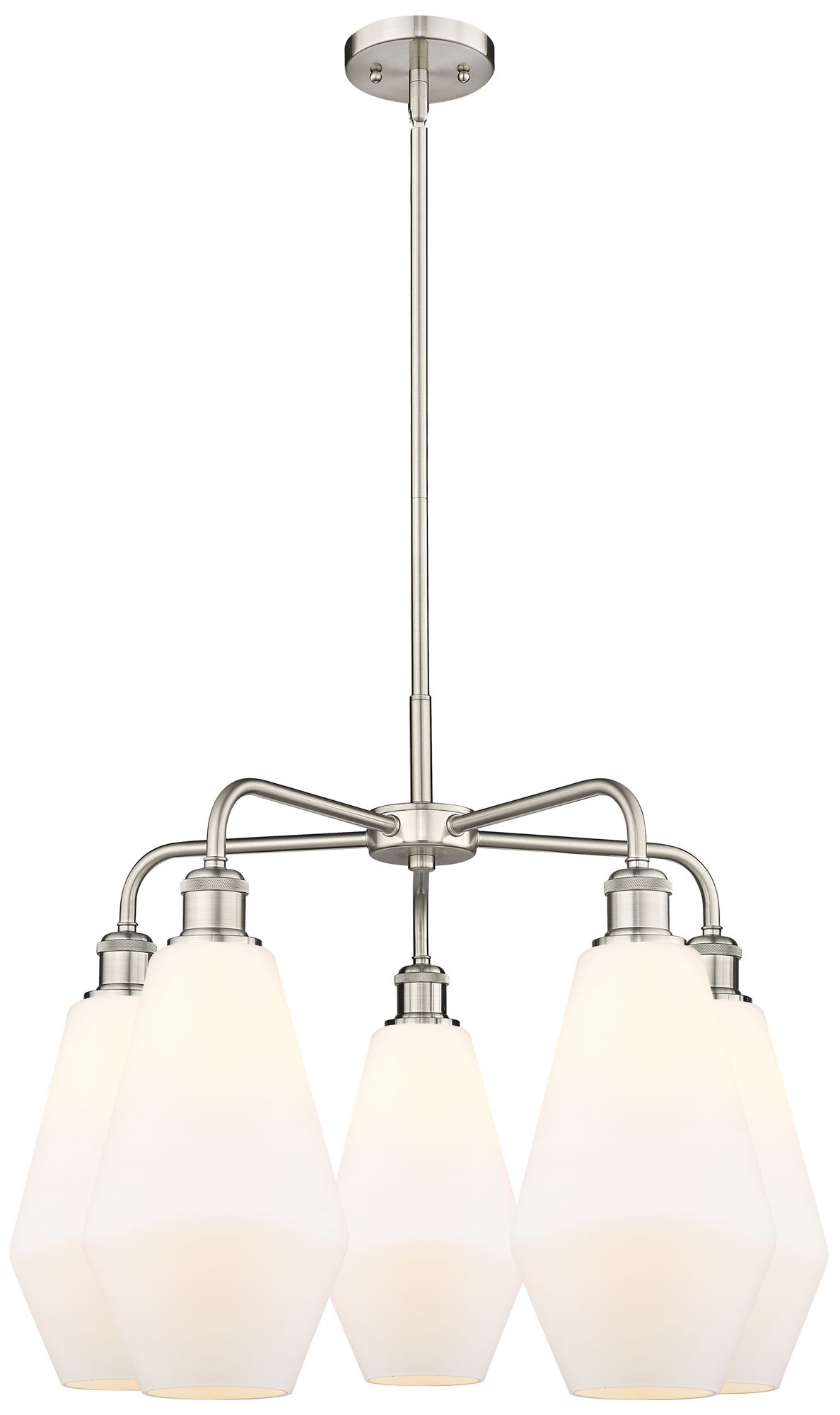 Cindyrella 25"W 5 Light Satin Nickel Stem Chandelier w/ Cased White Sh