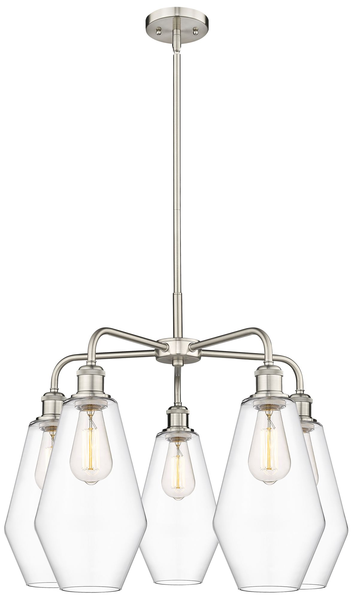Cindyrella 25"W 5 Light Satin Nickel Stem Hung Chandelier With Clear S