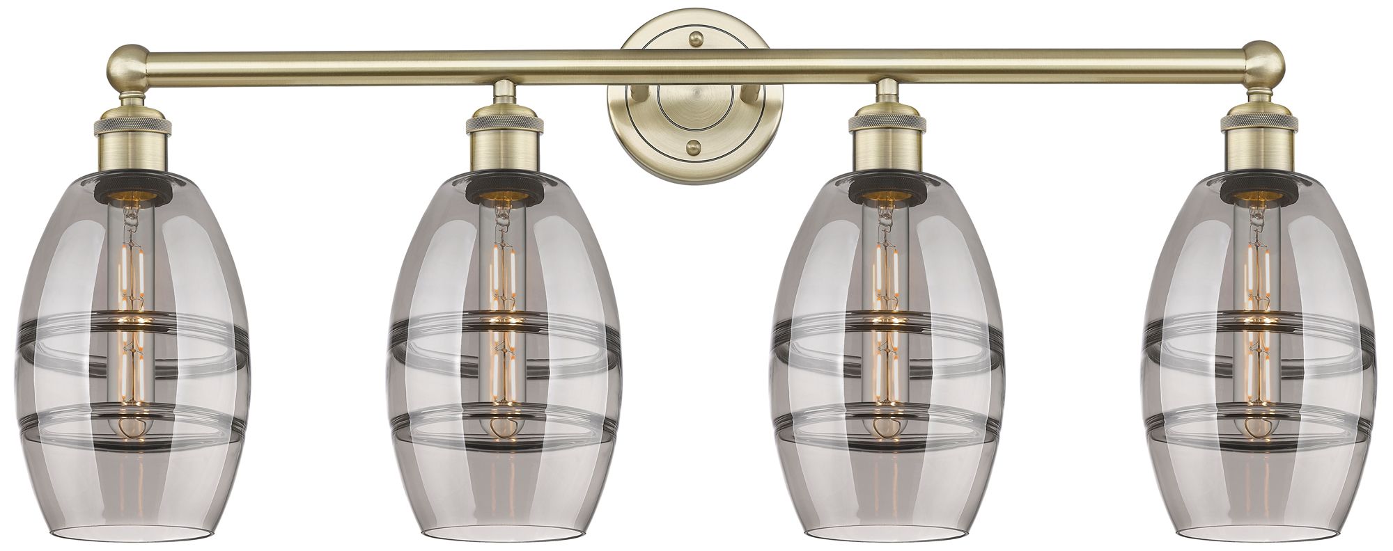 Edison Vaz 32.88"W 4Light Antique Brass Bath Vanity Light w/SmokeShade