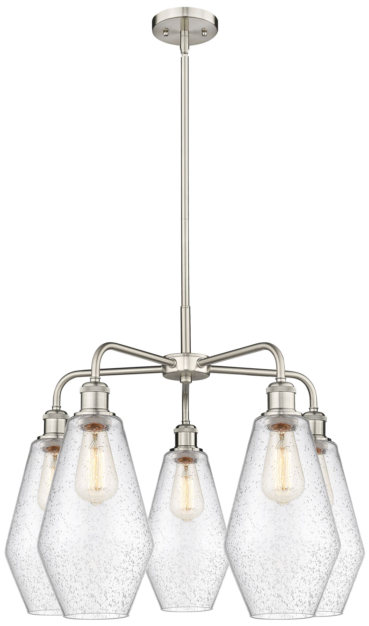 Cindyrella 25"W 5 Light Satin Nickel Stem Hung Chandelier With Seedy S