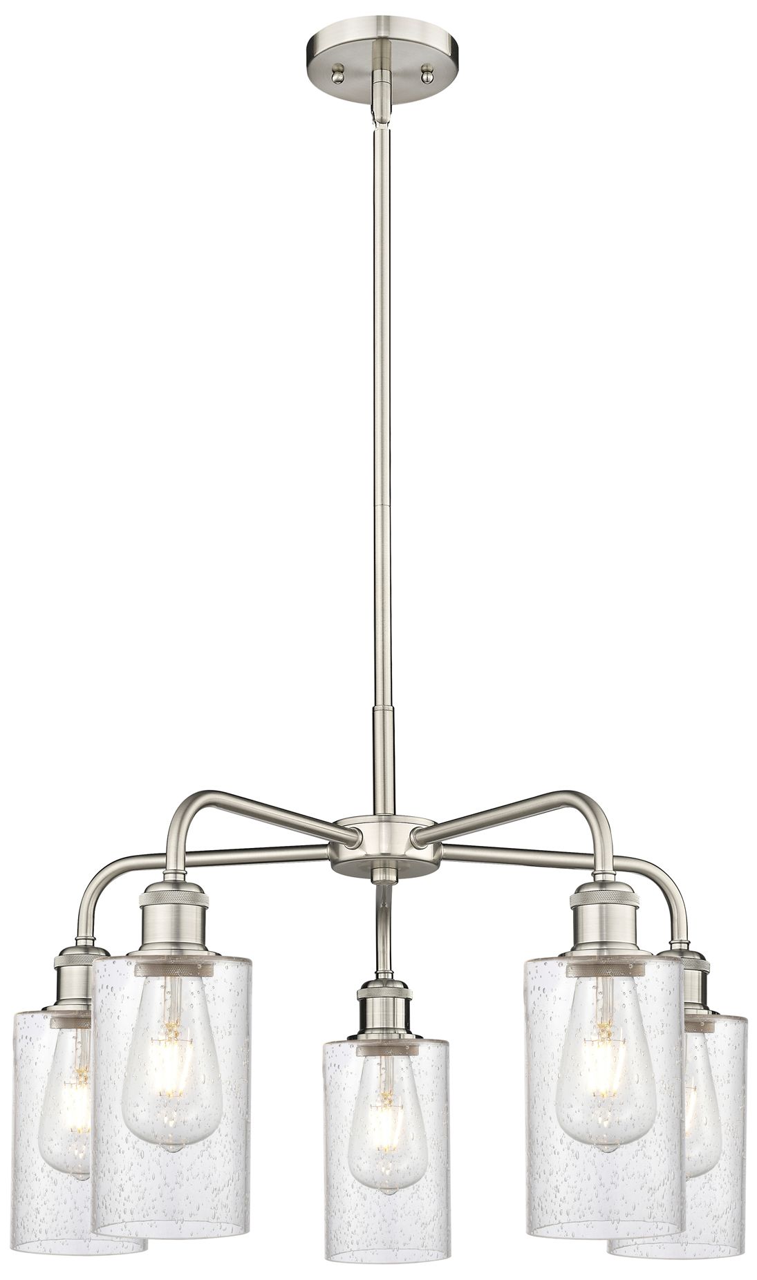 Clymer 21.88"W 5 Light Satin Nickel Stem Hung Chandelier With Seedy Sh