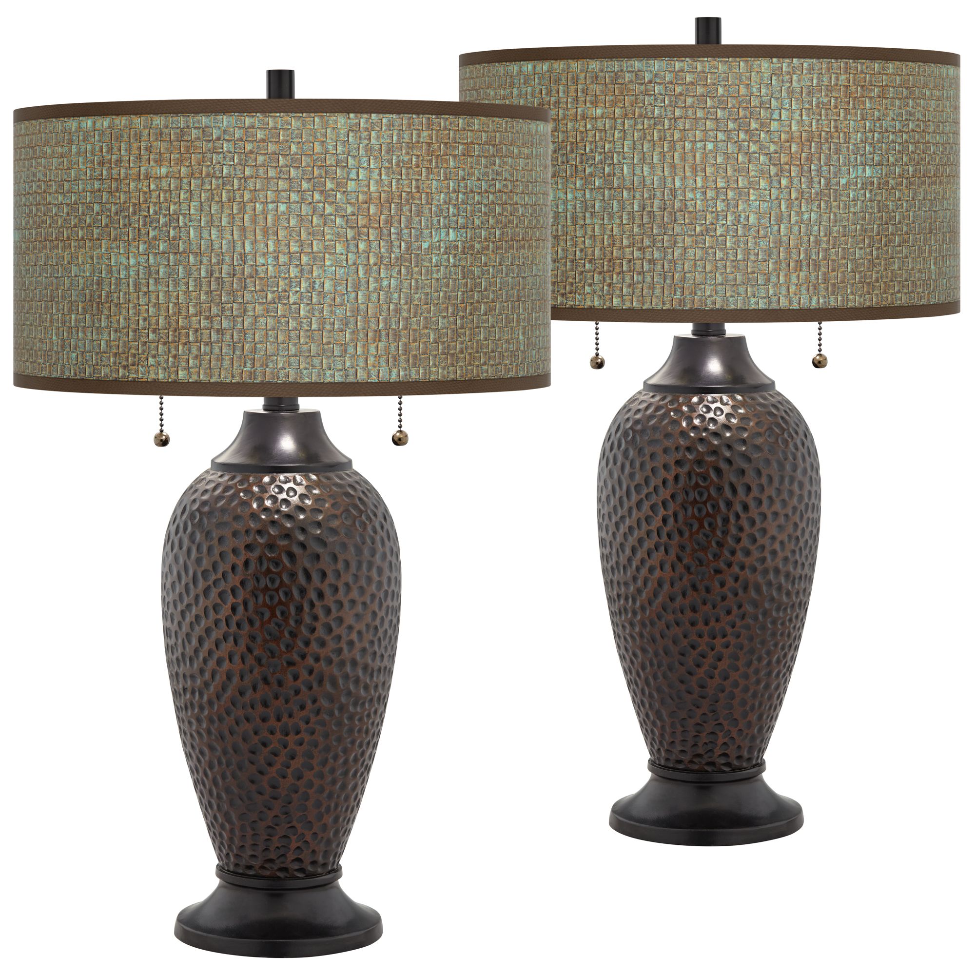 Giclee Glow 24 1/2" Interweave Shades Hammered Bronze Lamps Set of 2