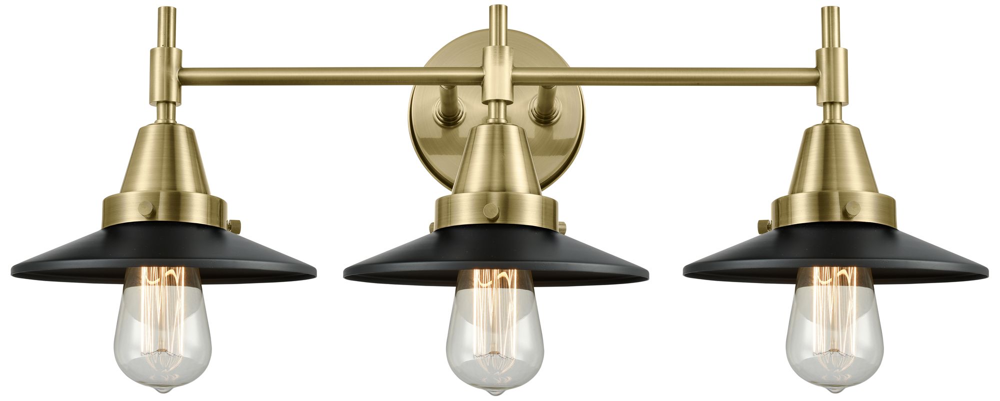 Caden Railroad 26"W 3 Light Antique Brass Bath Light w/ Matte Black Sh