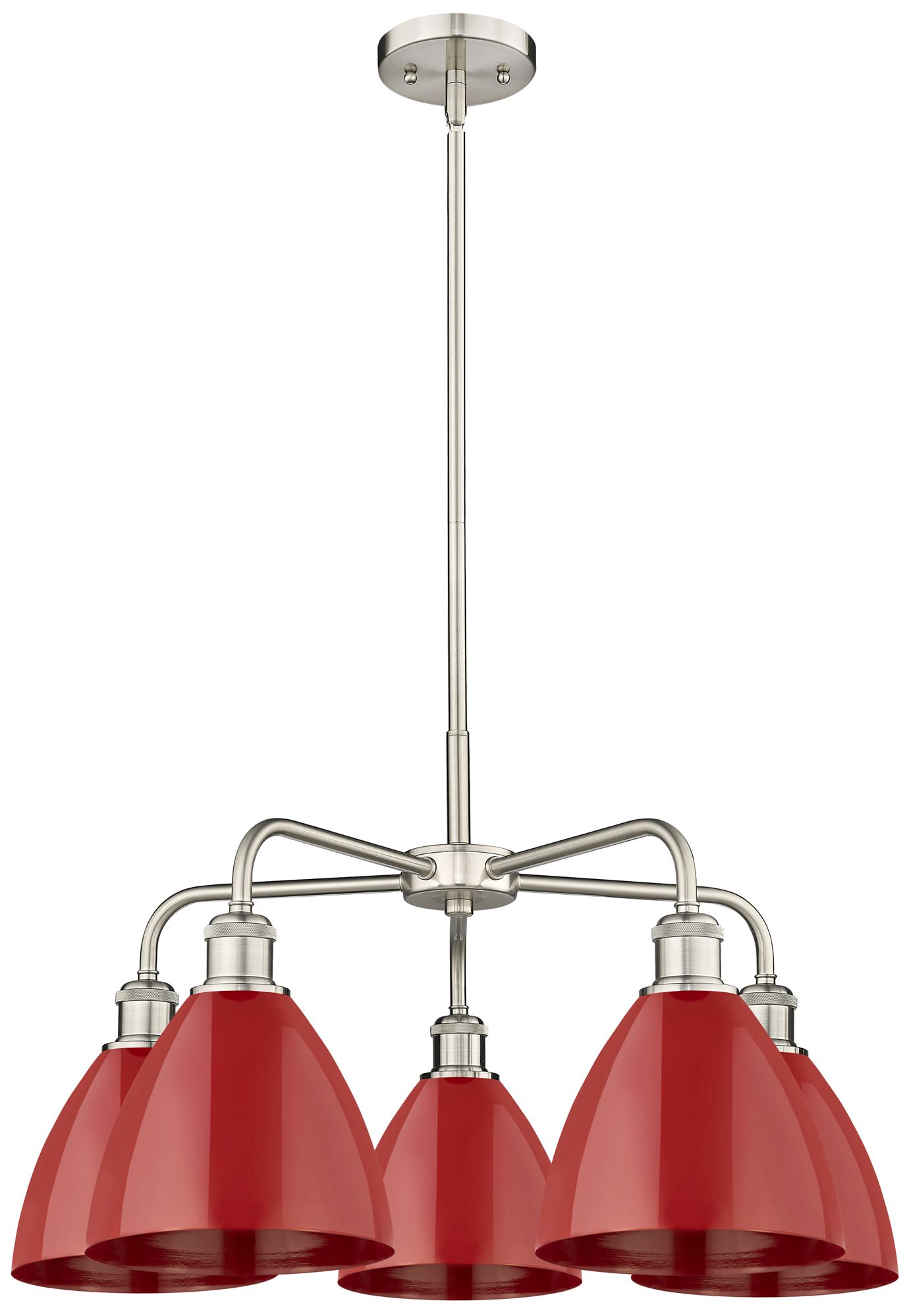 Ballston Dome 25.5"W 5 Light Satin Nickel Stem Hung Chandelier w/ Red