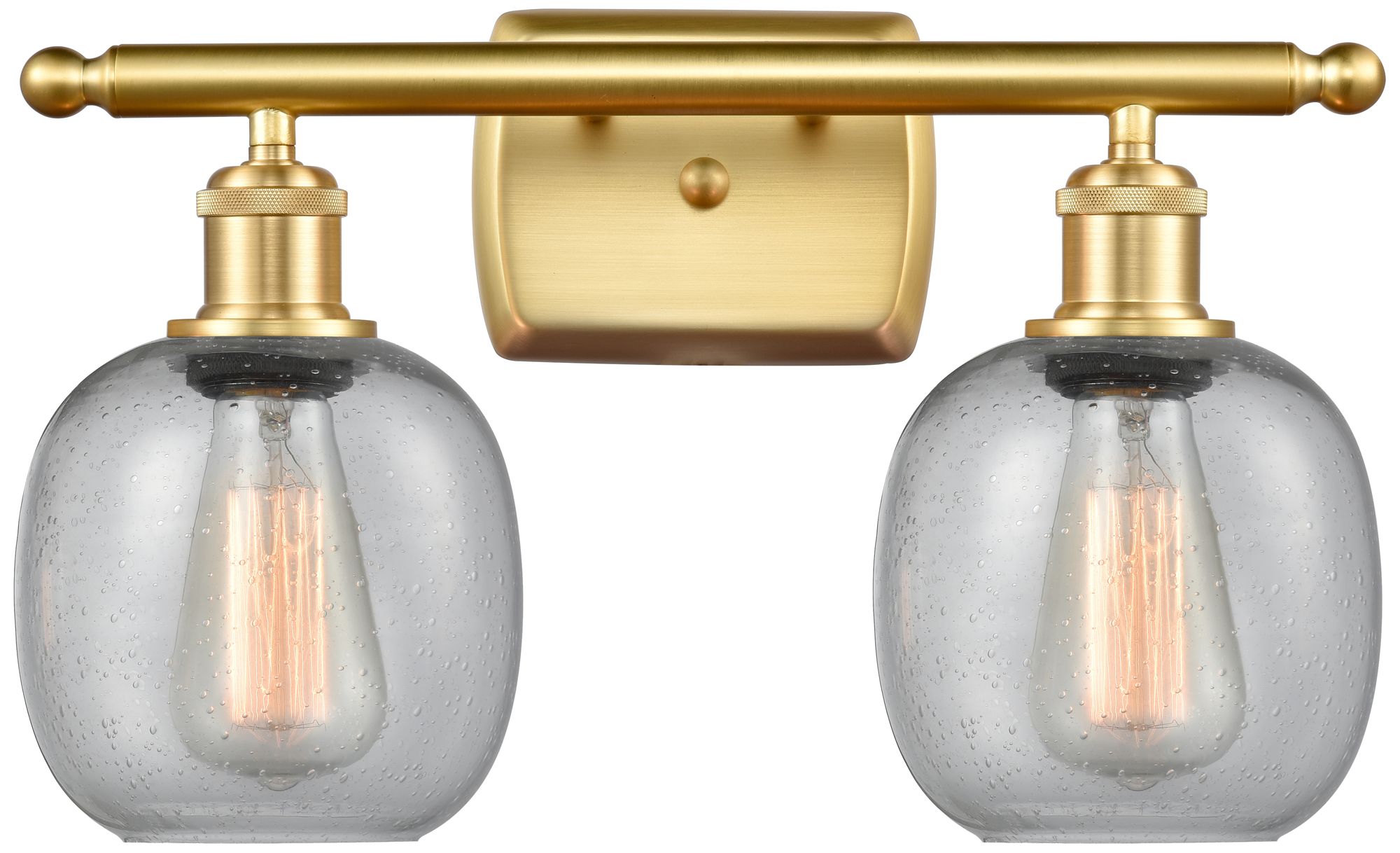 Belfast 16" 2-Light Satin Gold Bath Light w/ Seedy Shade