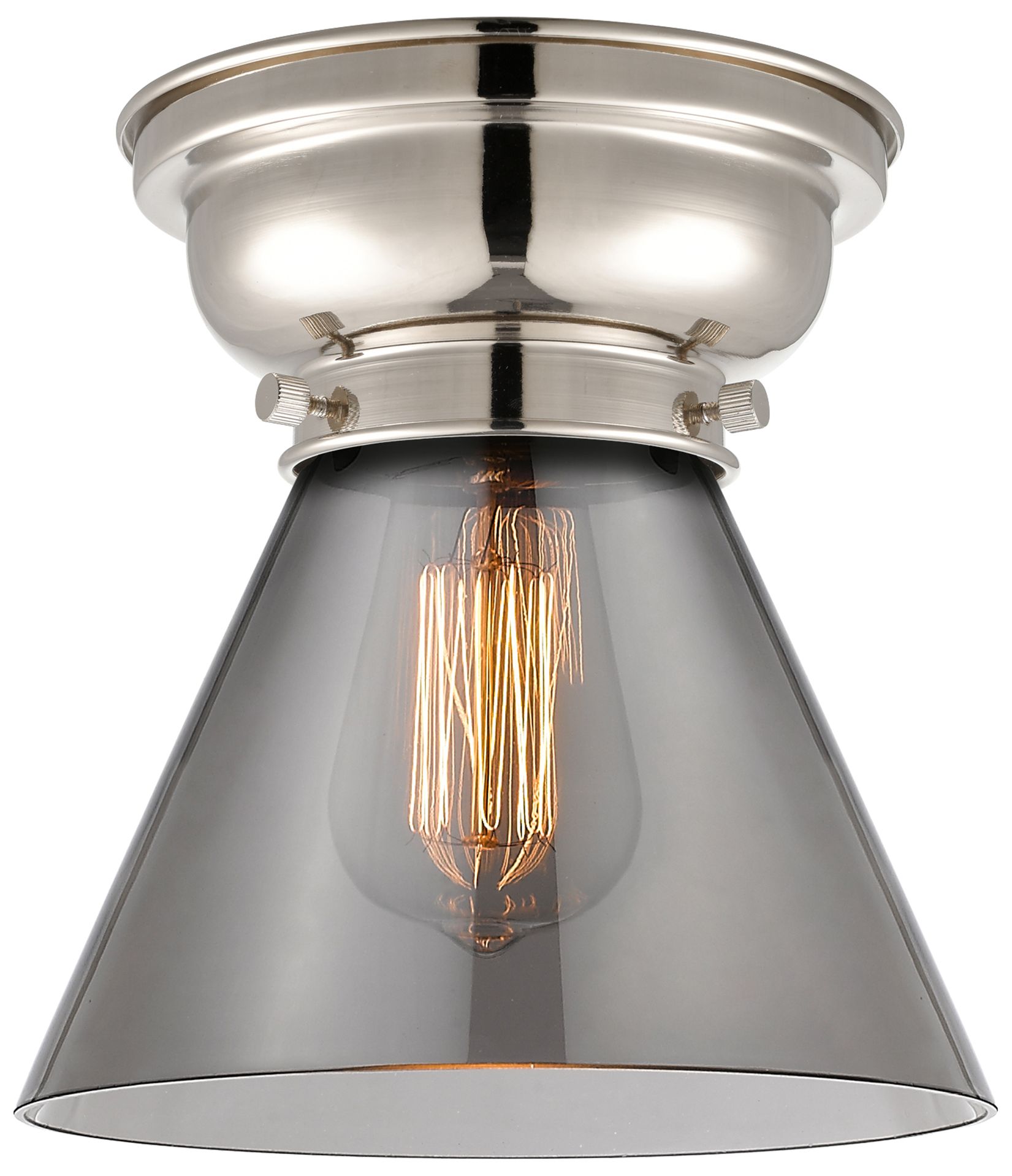 Aditi Cone 8" Polished Nickel Flush Mount w/ Plated Smoke Shade