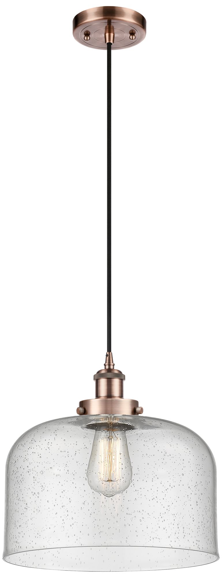 Ballston Urban Bell 12" Antique Copper Corded Mini Pendant w/ Seedy Sh
