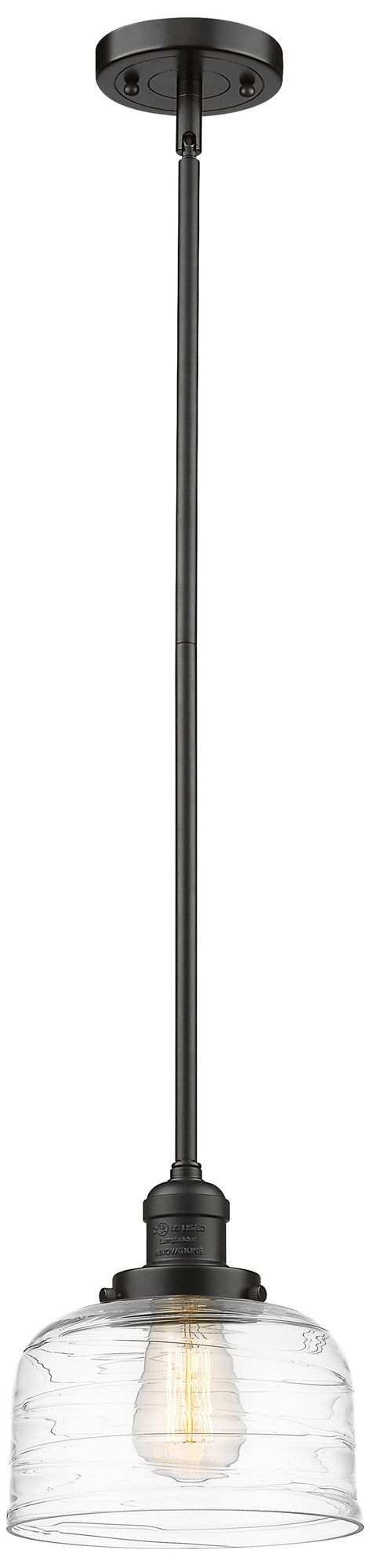 Franklin Bell 8" Wide Bronze Stem Hung Mini Pendant w/ Deco Swirl Shad