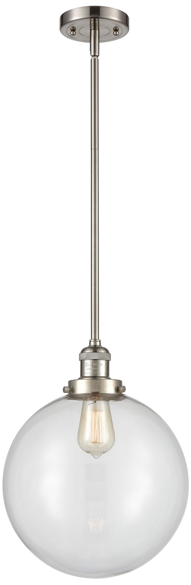 Franklin Beacon 12" Brushed Nickel Stemmed Mini Pendant w/ Clear Shade