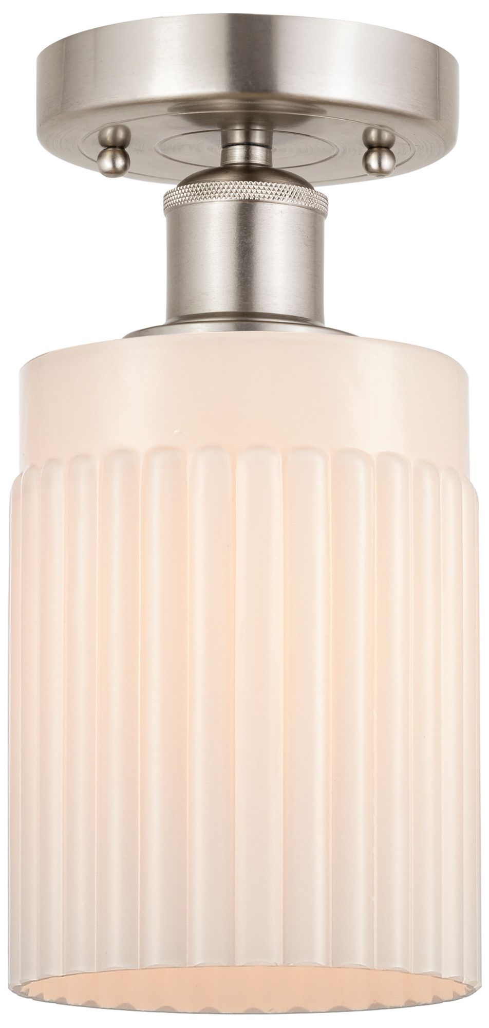 Edison Hadley 5" Brushed Satin Nickel Semi Flush Mount w/ Matte White