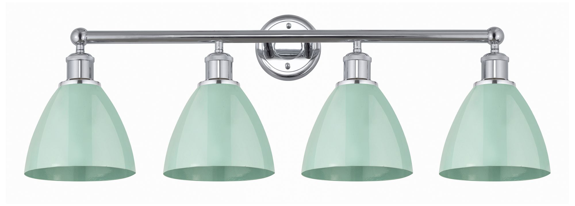 Plymouth Dome 34.5"W 4 Light Polished Chrome Bath Light w/ Seafoam Sha