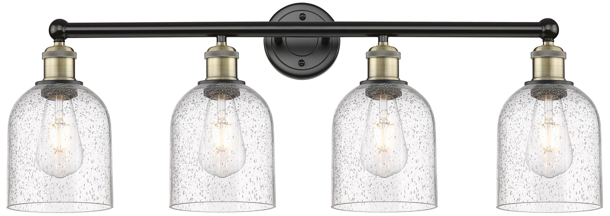 Edison Bella 32.5"W 4-Light Black Brass Bath Vanity Light w/ Seedy Sha