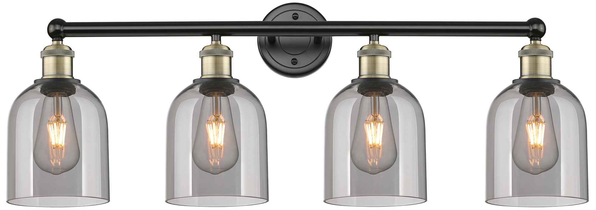 Edison Bella 32.5"W 4-Light Black Brass Bath Vanity Light w/ Smoke Sha