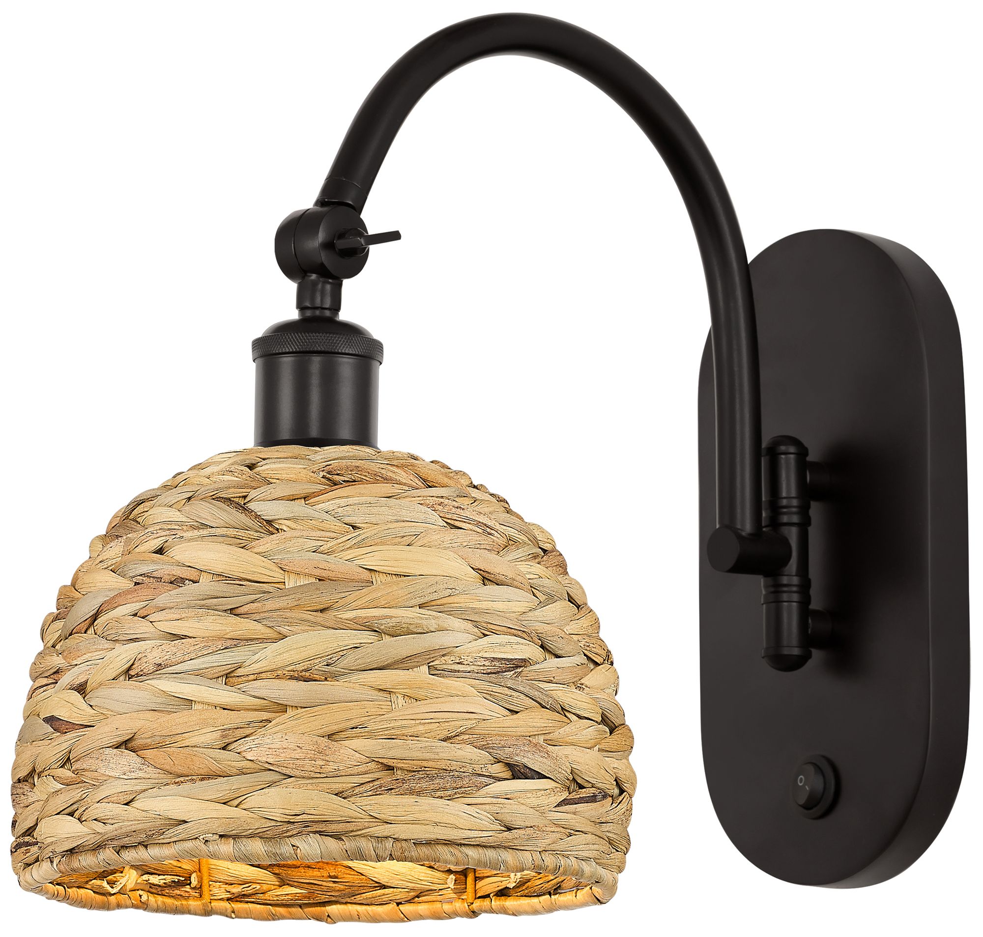 Woven Rattan 12.5"H Oil Rubbed Bronze Horizontal Swivel Sconce