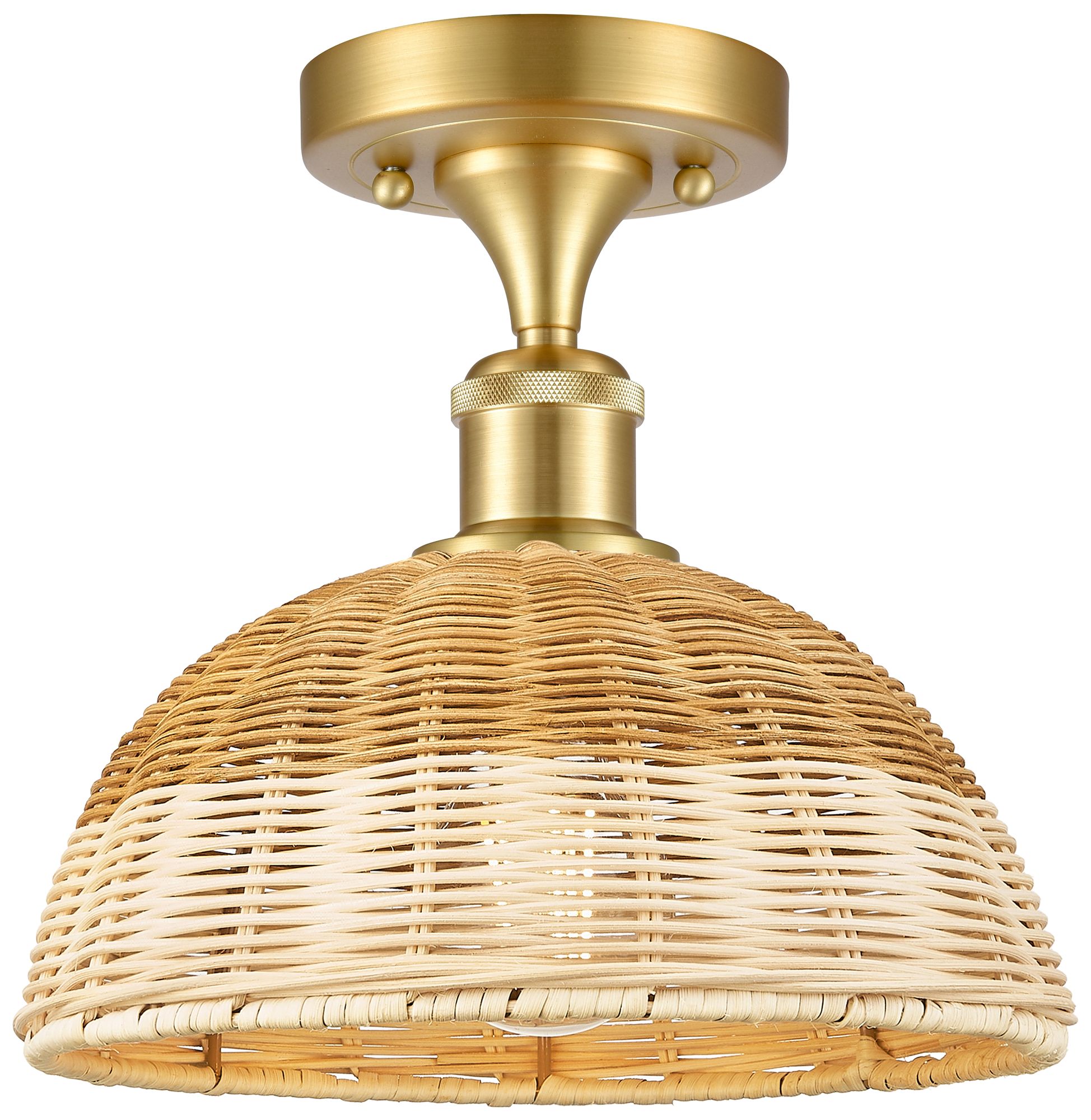 Ballston Bristol Natural II 9" Wide Satin Gold Semi.Flush Mount With
