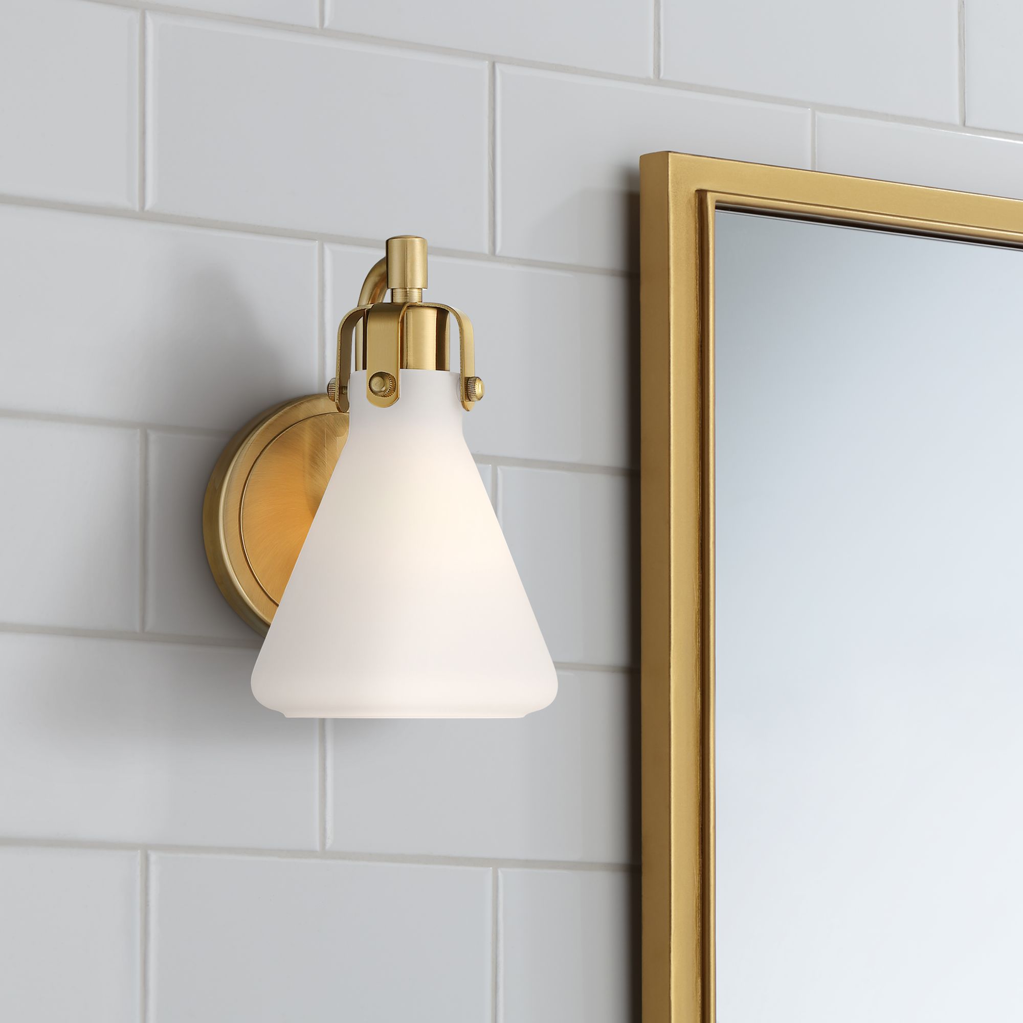 Stiffel 8 1/2" High Warm Brass and White Glass Modern Wall Sconce
