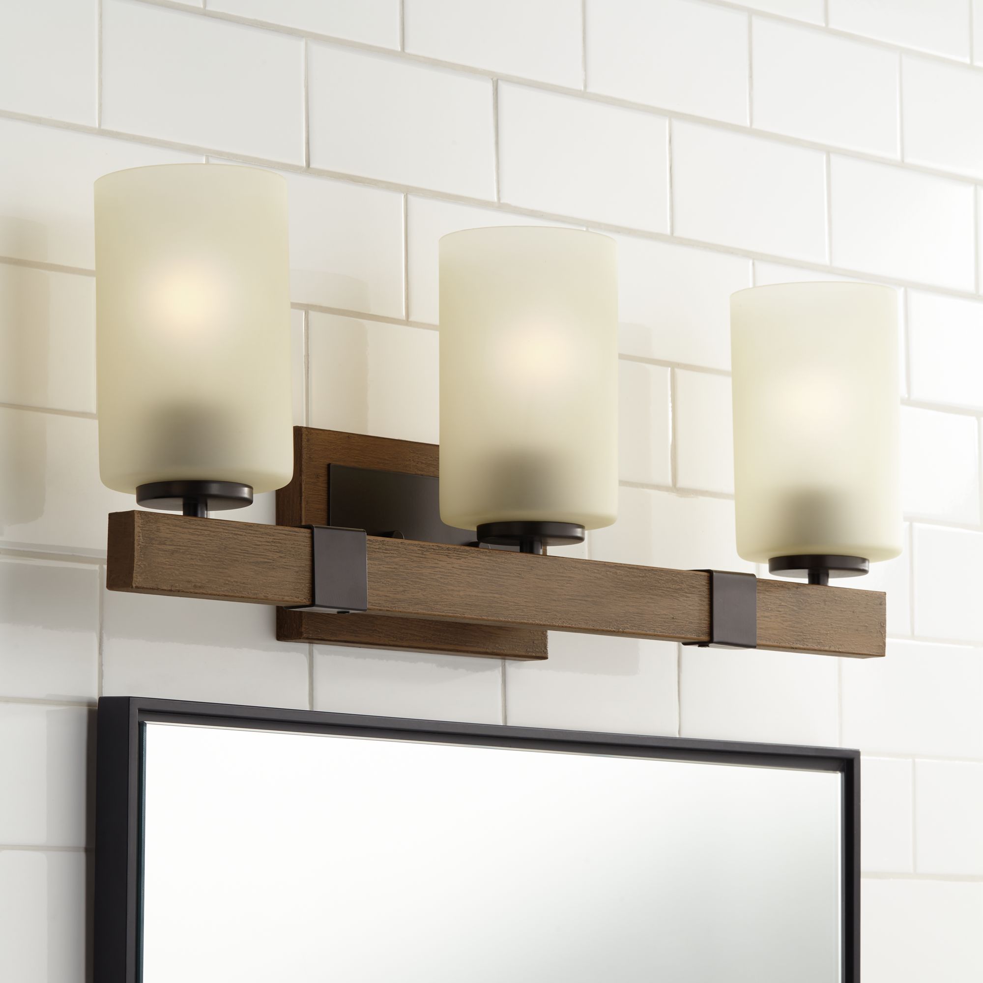 Duncan 24" Wide Bronze and Wood 3-Light Bar Bath Light
