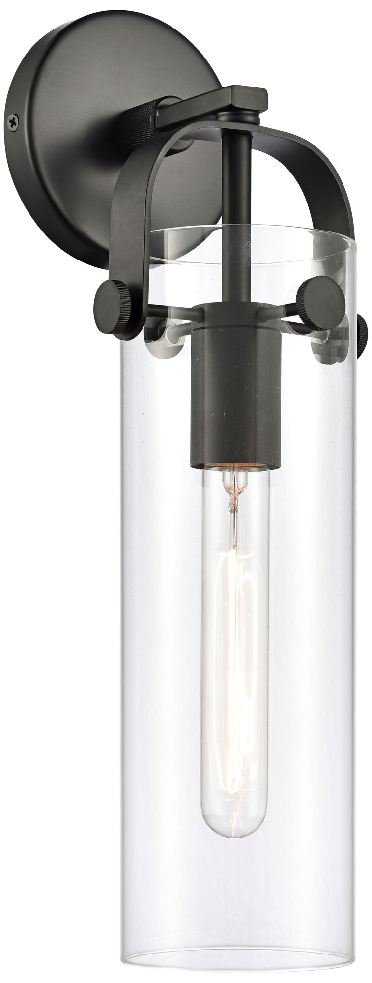 Pilaster 16 3/4" High Matte Black Cylinder Glass Wall Sconce