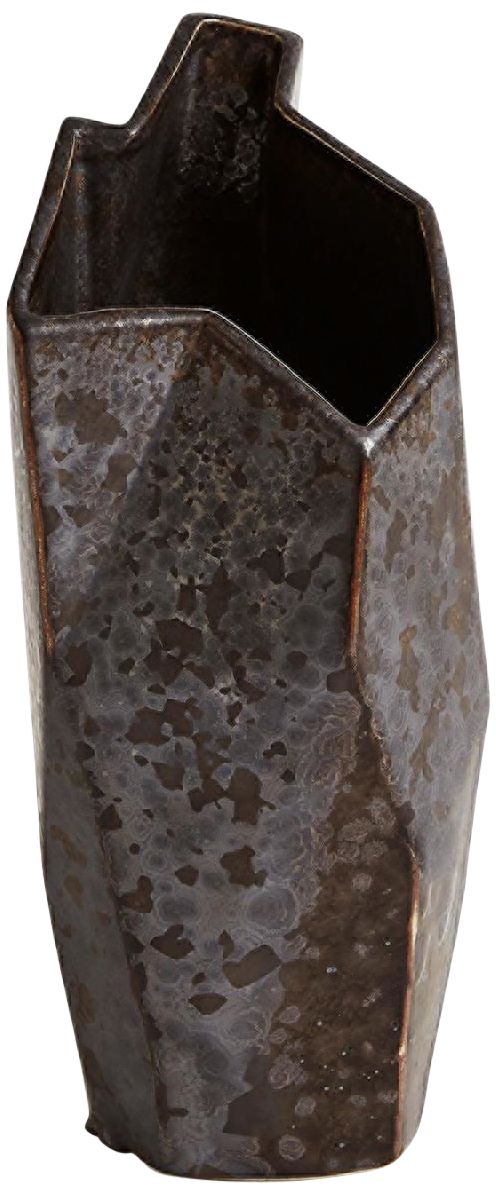 Origami 11" High Reactive Bronze Ceramic Decorative Vase