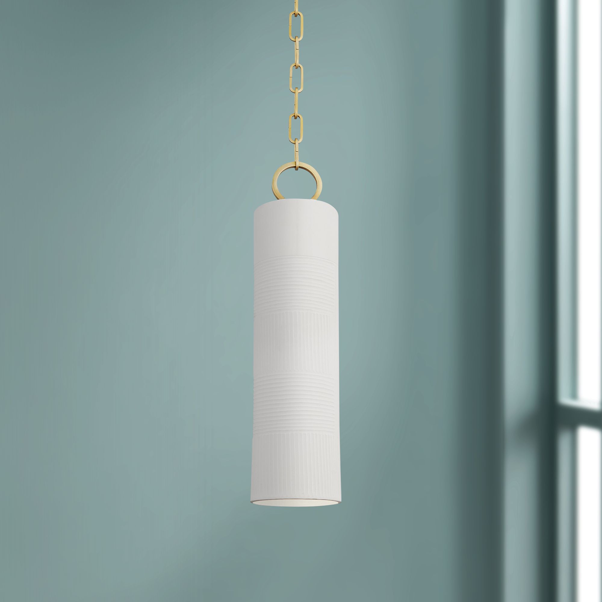 eBrookville 5" Wide Aged Brass Pendant Light with White Ceramic