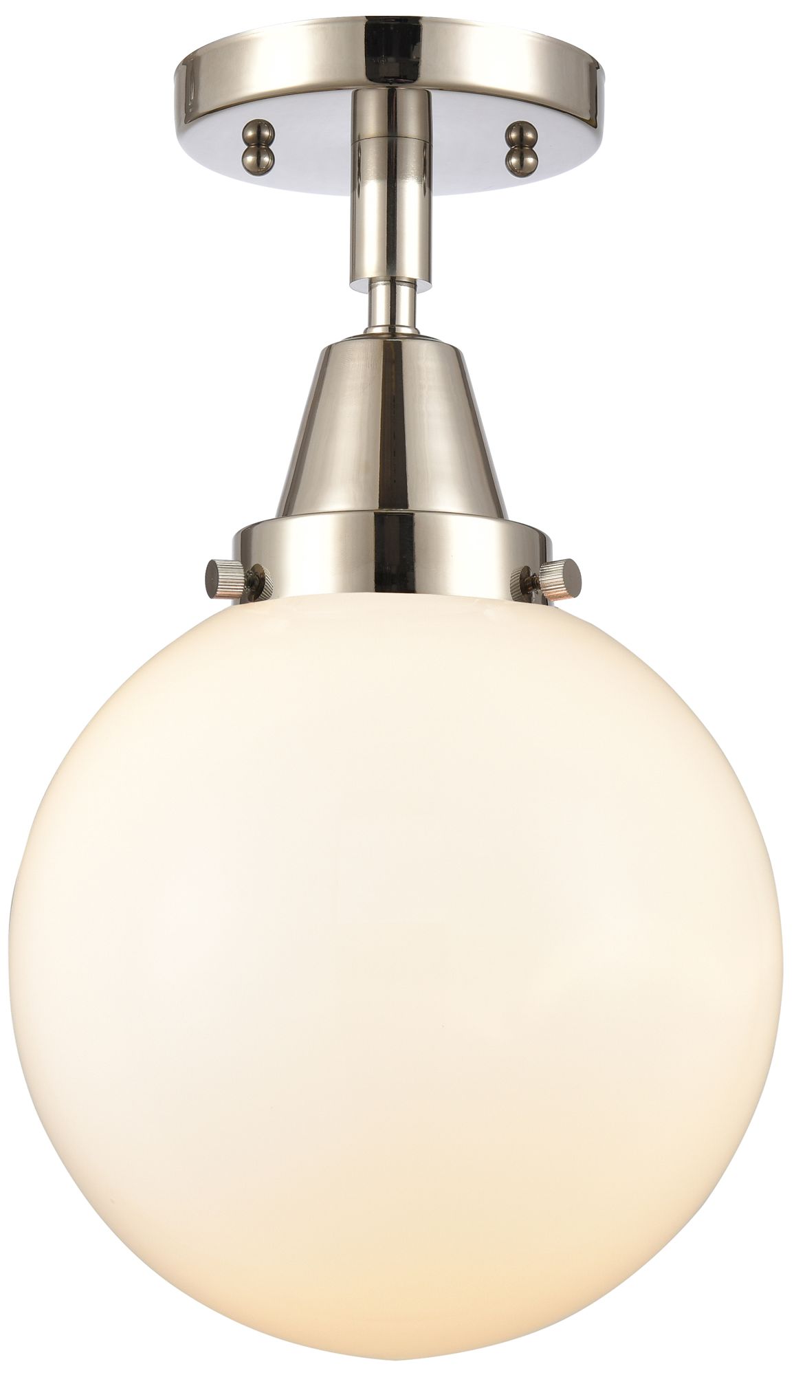 Caden Beacon 8" LED Flush Mount - Polished Nickel - Matte White Shade