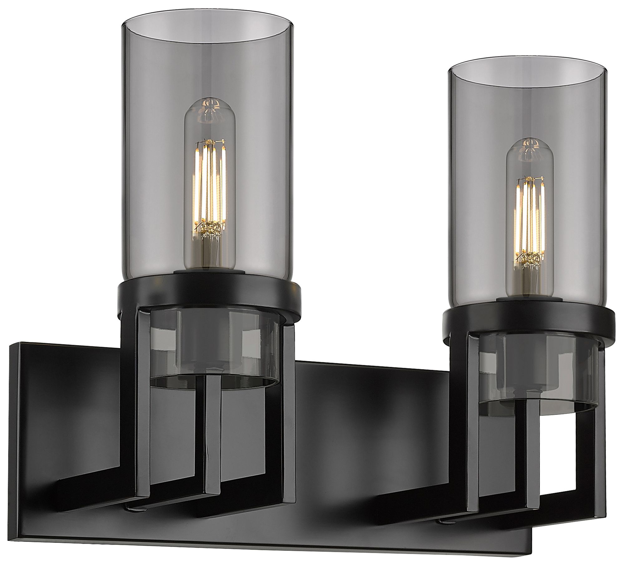 Utopia 15" Wide 2 Light Matte Black Bath Light With Plated Smoke Shade
