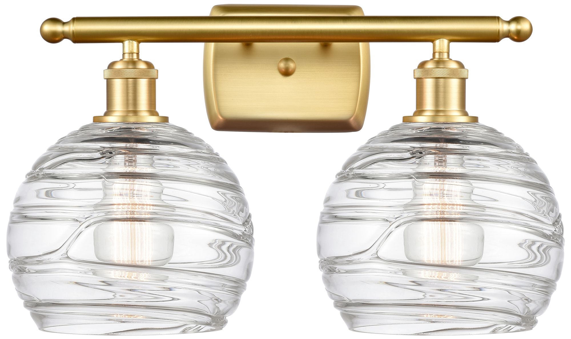 Athens 18" 2-Light Satin Gold Bath Light w/ Clear Deco Swirl Shade