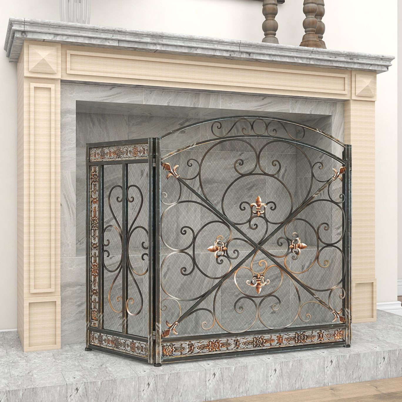 Big Easy Black 31"H 3-Panel Fleur De Lis Fireplace Screen