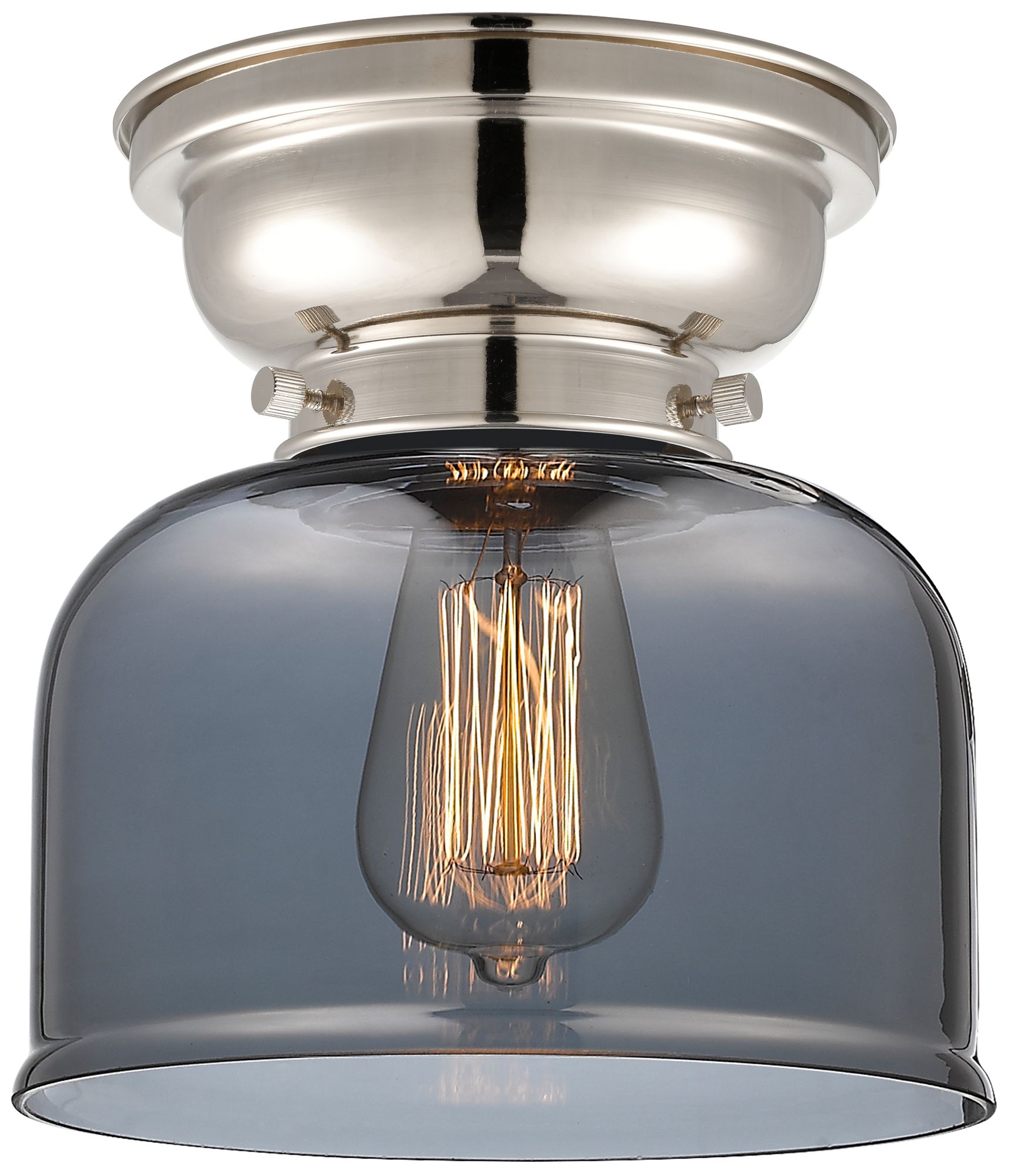 Aditi Bell 8" Polished Nickel Flush Mount w/ Plated Smoke Shade