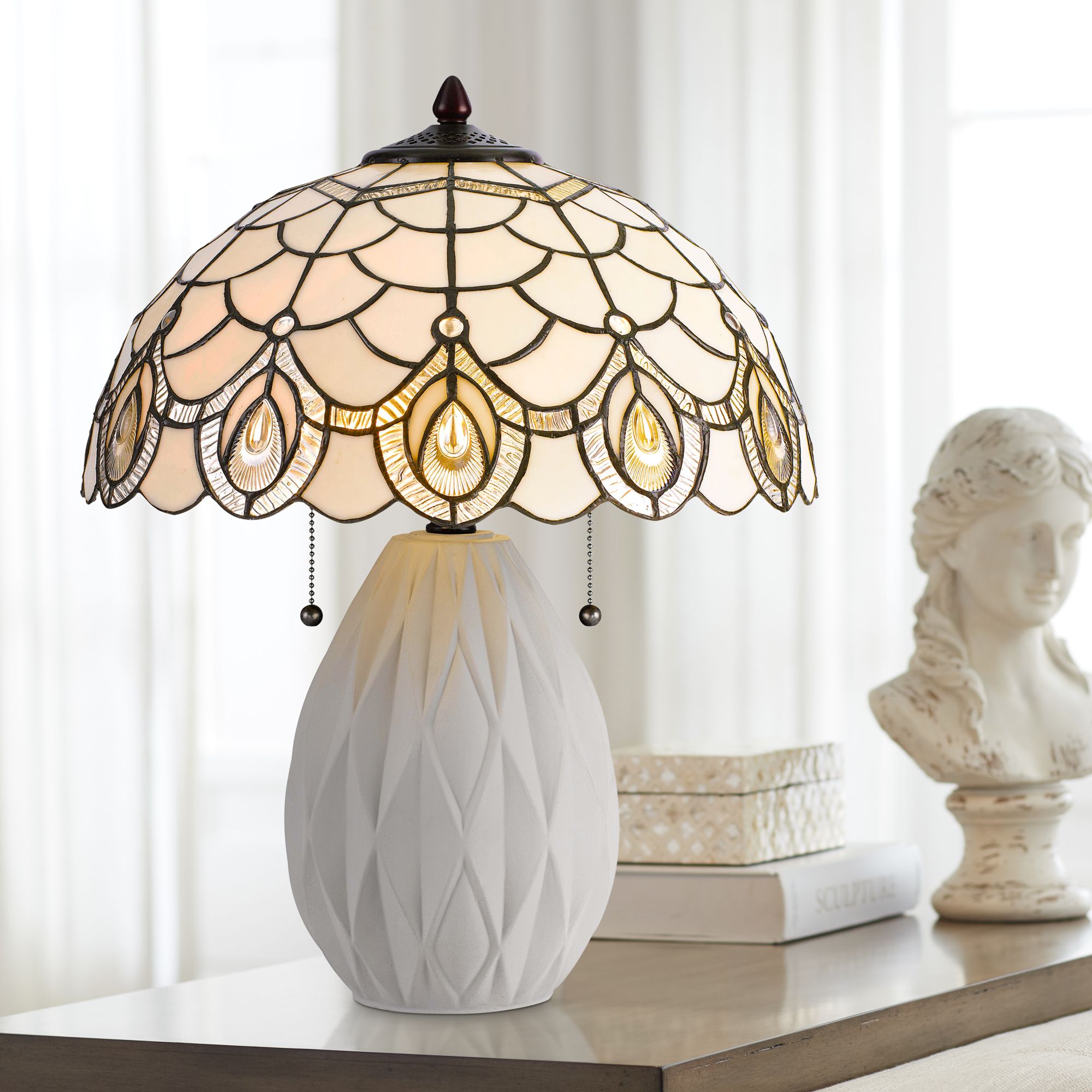 Cal Lighting 20 1/4" High Cream Tiffany Style Glass Shade Table Lamp