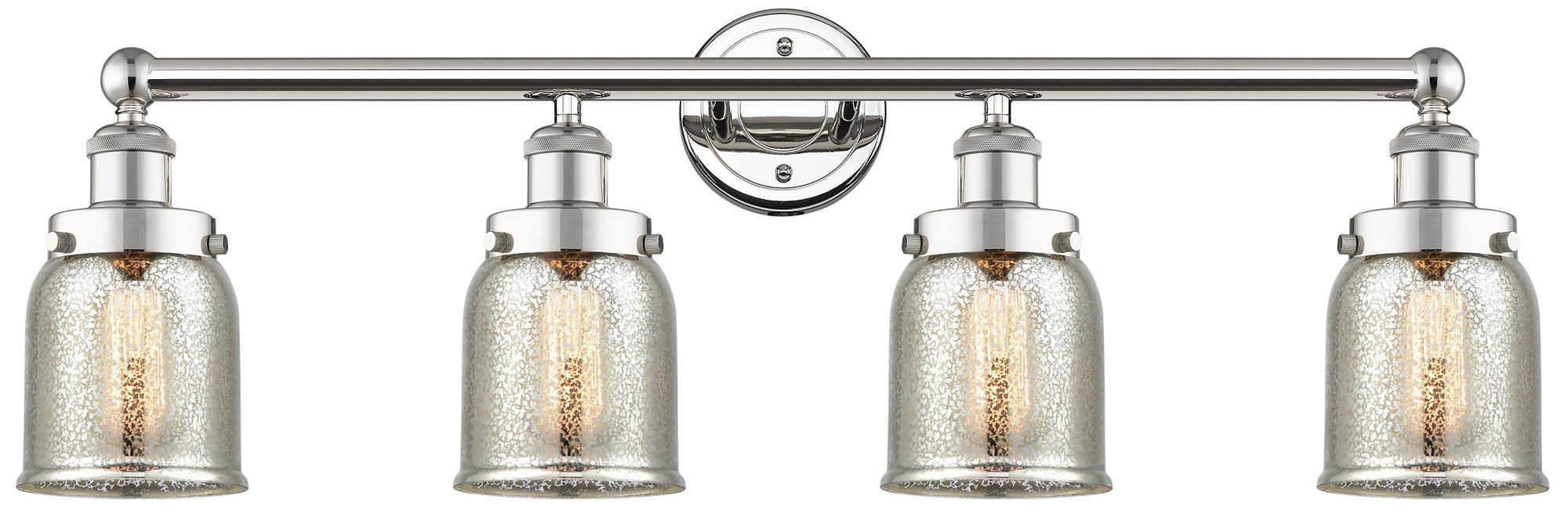 Small Bell 33.5"W 4 Light Polished Nickel Bath Light w/ Mercury Shade