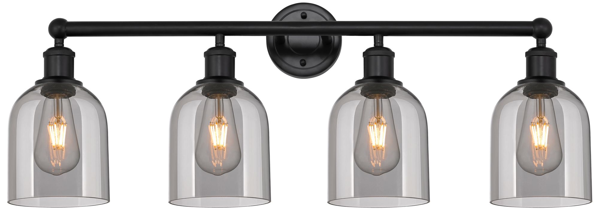 Edison Bella 32.5"W 4-Light Matte Black Bath Vanity Light w/ Smoke Sha