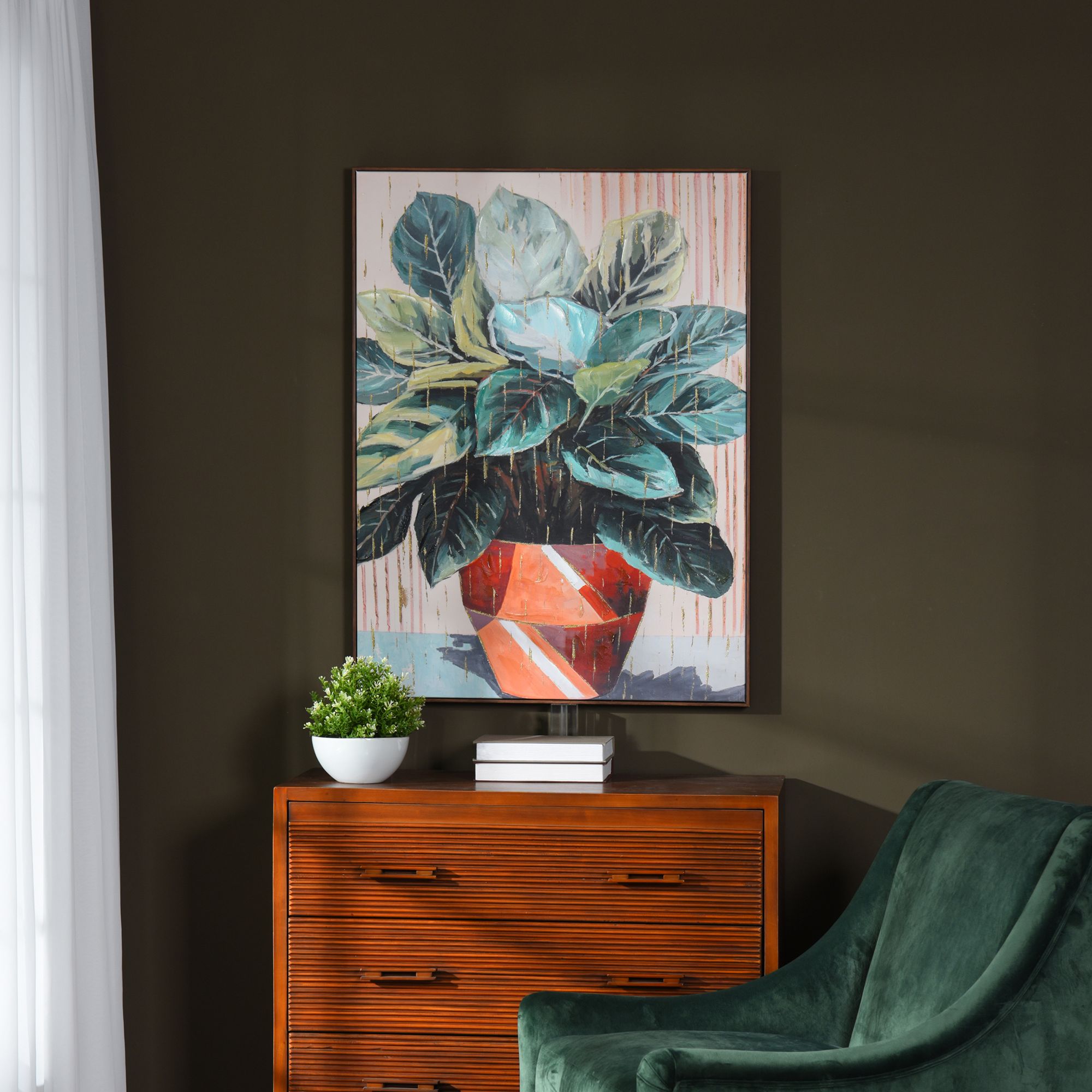 Potted Plant I 30"W x 40"H Hand Embellished Framed Canvas Wall Ar