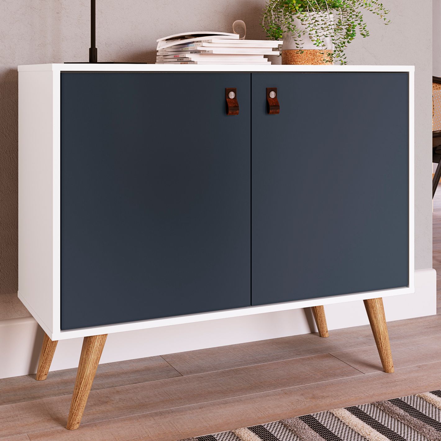 Amber 32 3/4" Wide White Blue Wood 2-Door Accent Cabinet