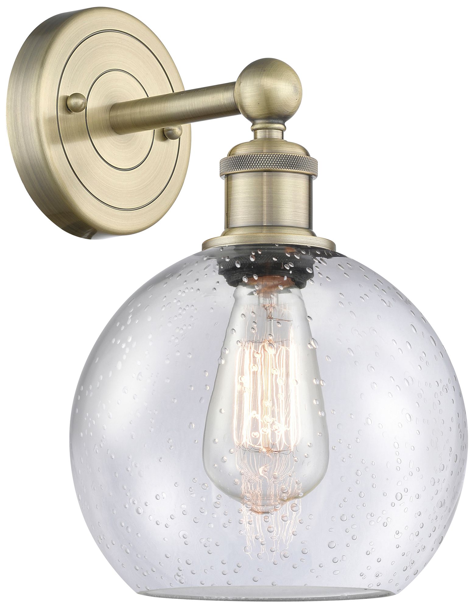Athens 13"High Antique Brass Sconce With Seedy Shade