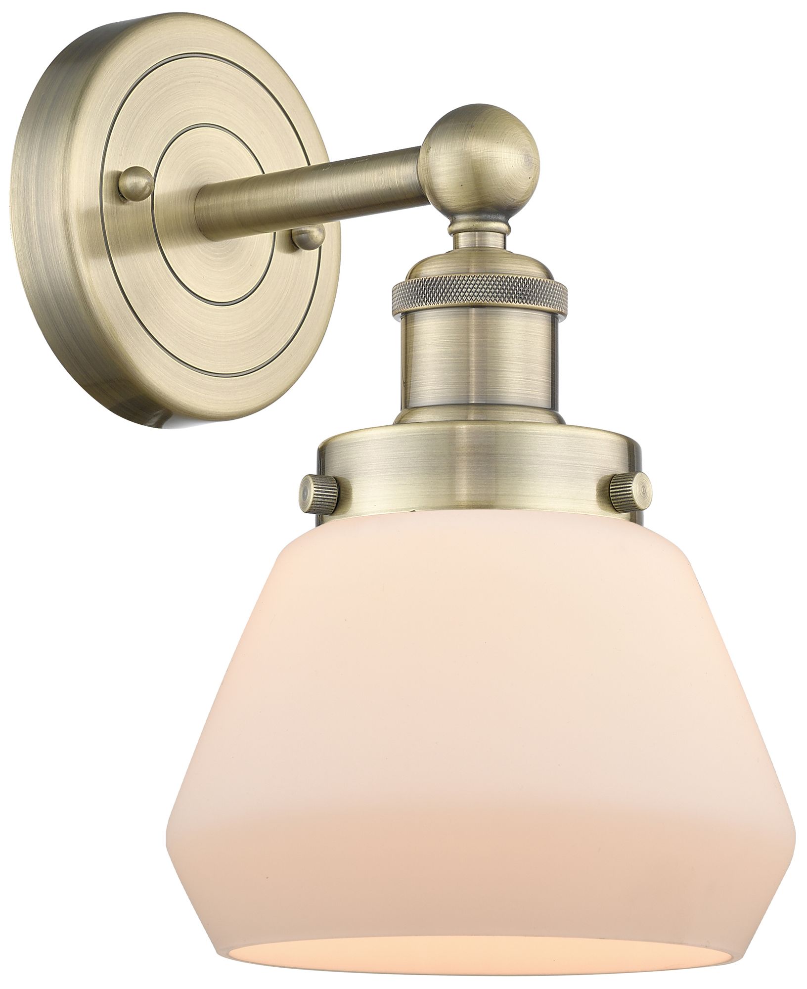 Fulton 10"High Antique Brass Sconce With Matte White Shade