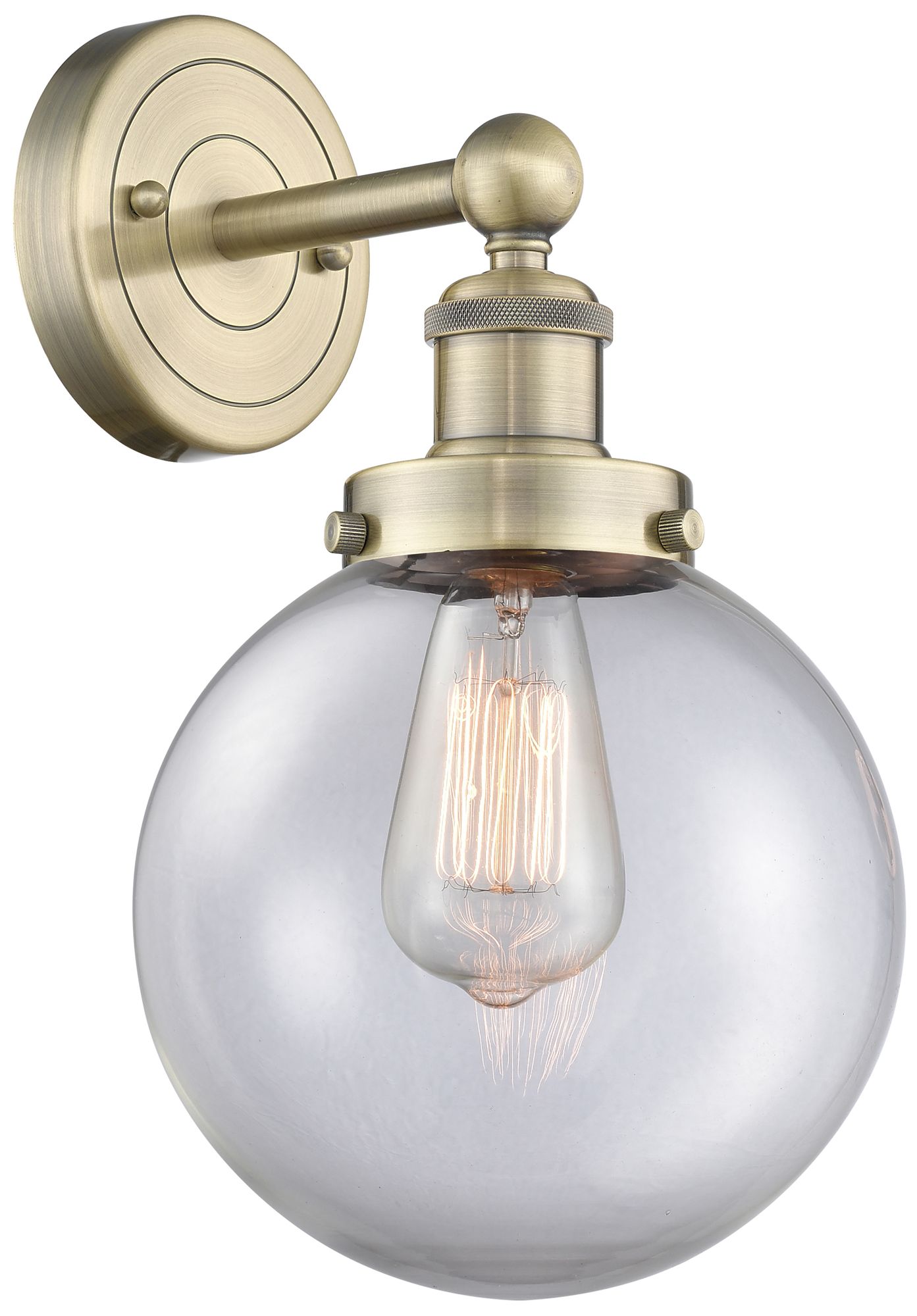 Large Beacon 10"High Antique Brass Sconce With Clear Shade
