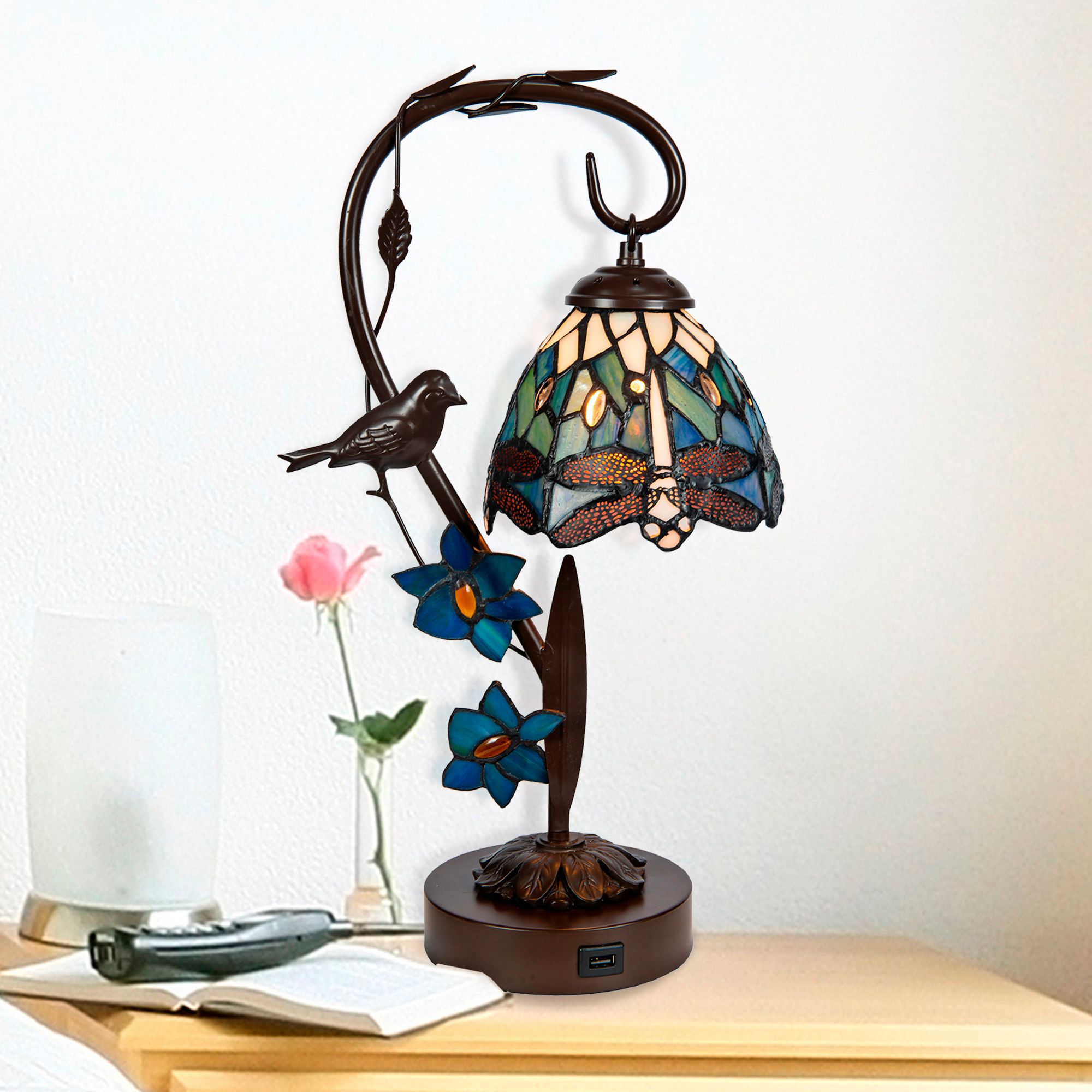 Bird On Vine Dragonfly 18"H Antique Bronze Accent Table Lamp
