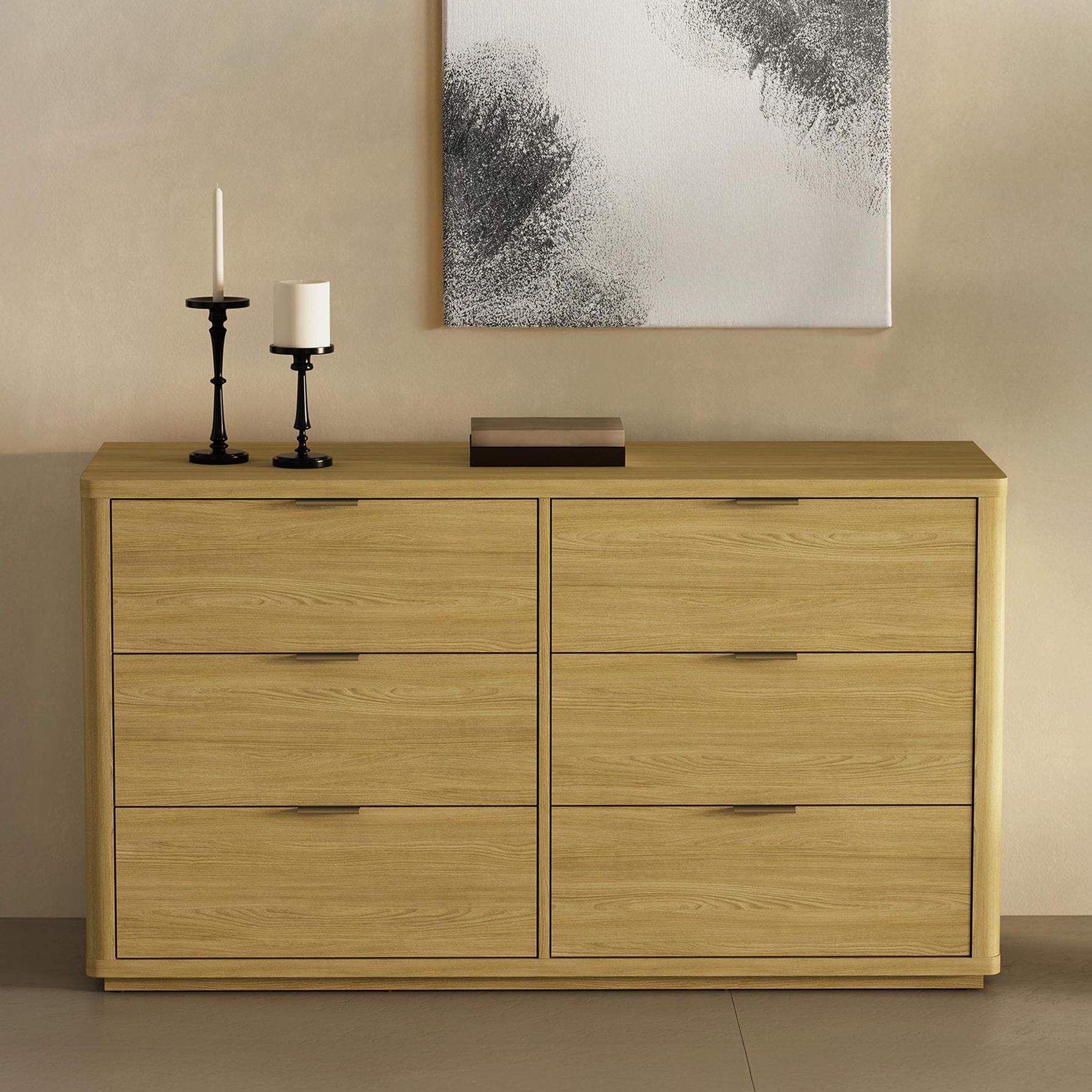 Evalyn Modern 60" Dresser in Natural (6-Drawer)