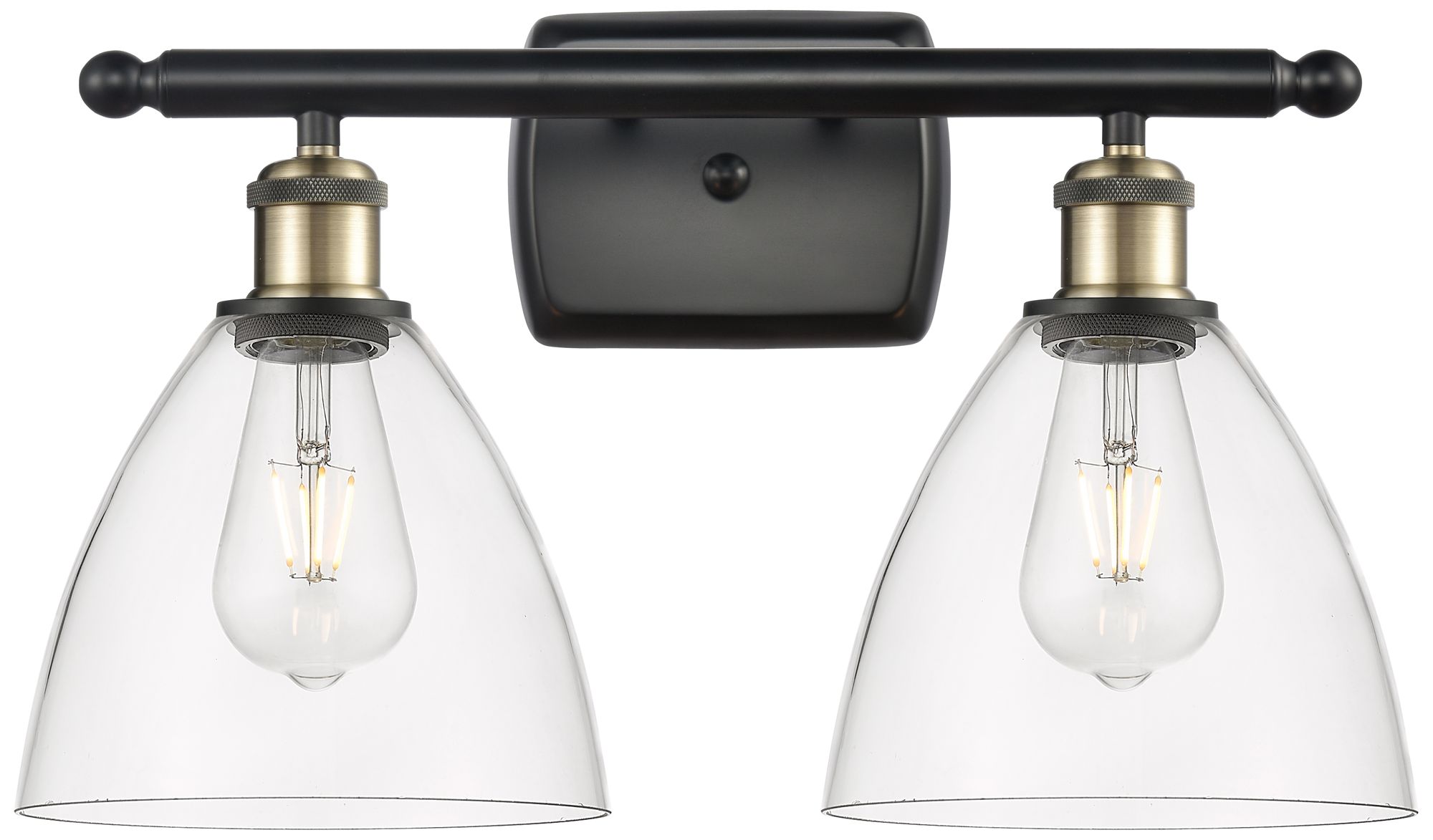 Bristol Glass 2 Light 18" LED Bath Light - Black Brass - Clear Shade