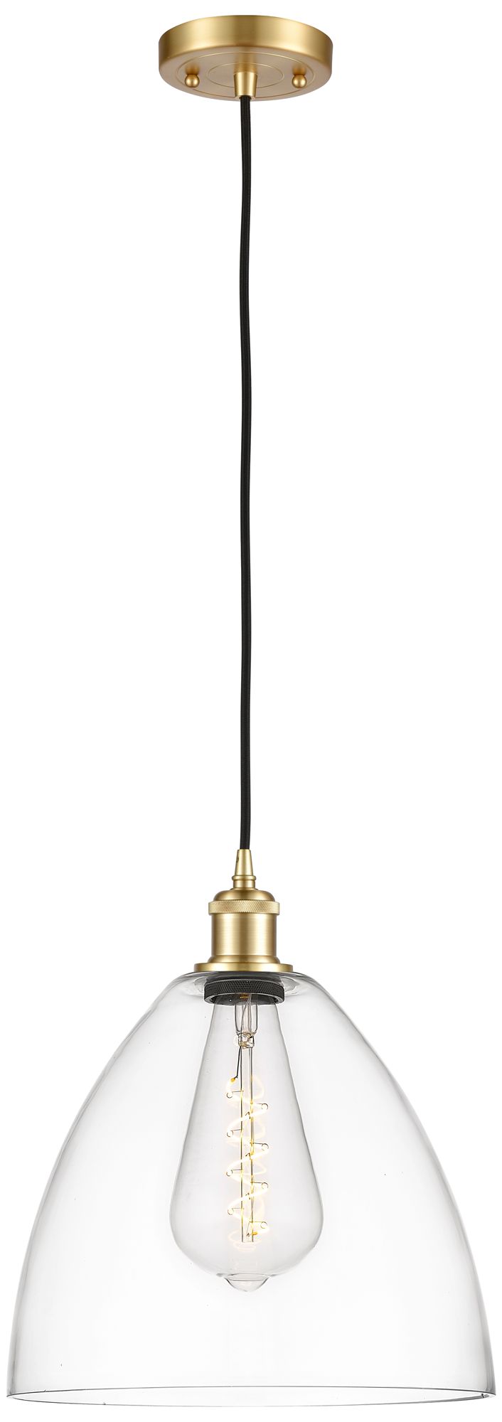 Ballston Bristol Glass 12" LED Mini Pendant - Satin Gold - Clear Shade