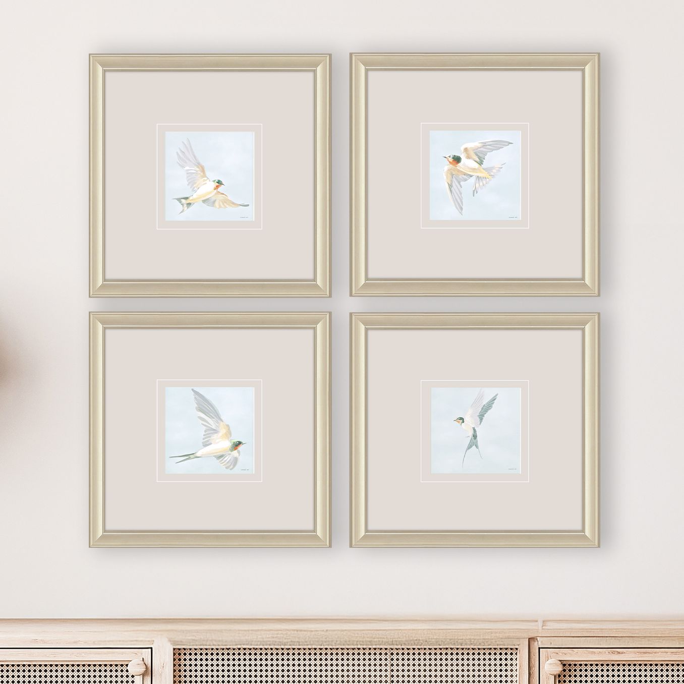 Swifts 16"W x 16"H Framed Art Set of 4