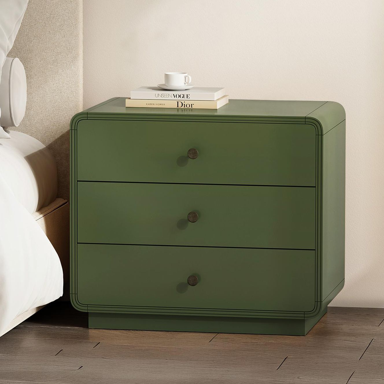 Liora Contemporary 28" Nightstand in Green (3-Drawer)